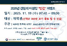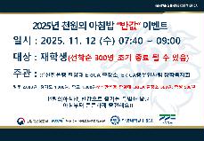 863 | [장학복지회]창의관식당 천원의 아침밥 ‘반값’ 이벤트 안내 | | 관리자 | 2025.11.11 |