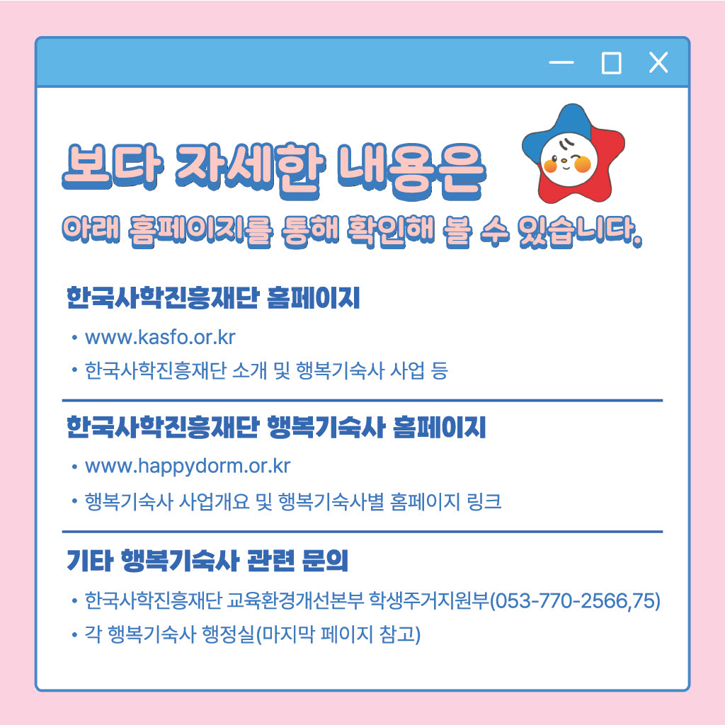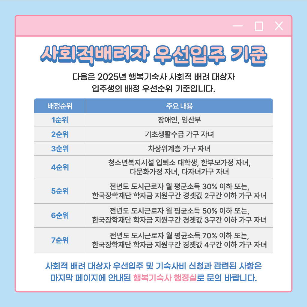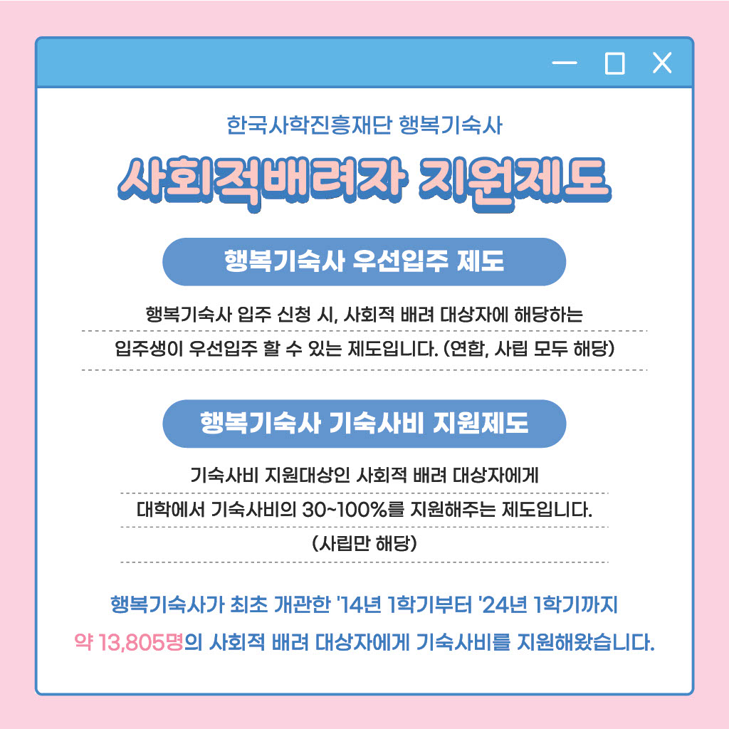 [행복관]행복기숙사 사회적배려자 지원제도 안내