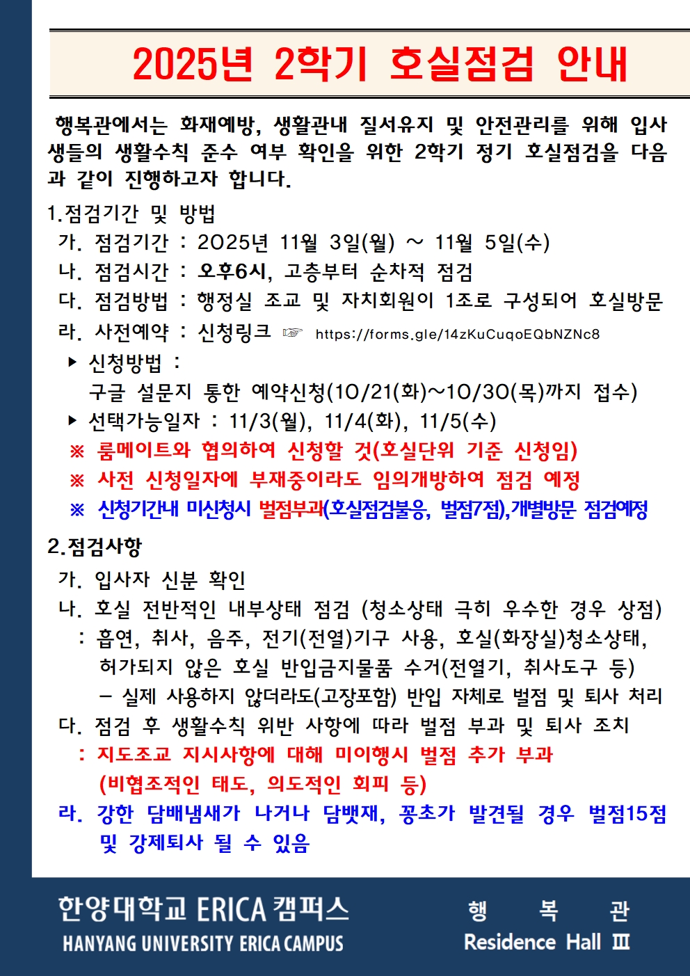 [행복관]2025-2학기 호실점검 안내