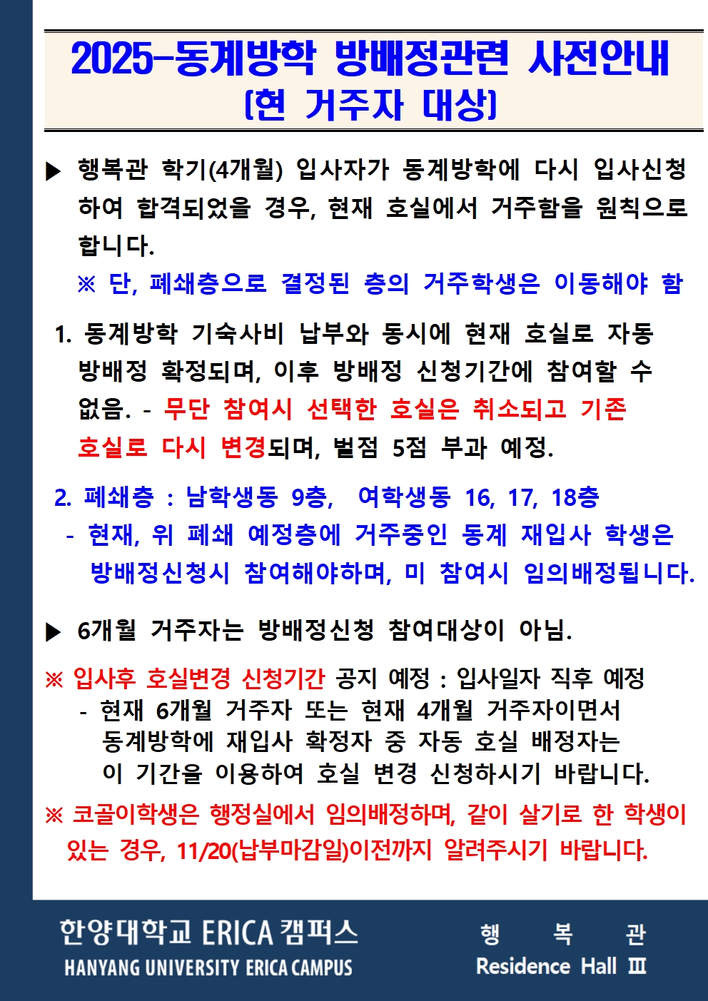 [행복관]2025-동계방학 방배정관련 사전안내 [현거주자대상]