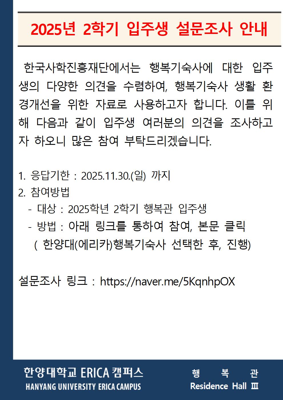 [행복관]2025년 2학기 입주생 설문조사 안내